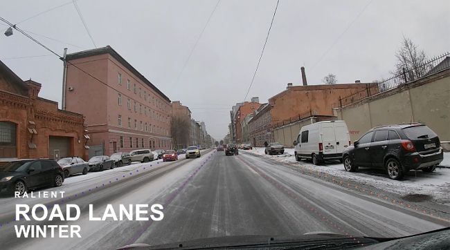Компания Ralient опубликовала видео работы своих нейронных сетей для поиска разметки на дорогах общего пользования в сложных условиях.