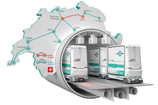 Гораздо менее амбициозный, чем проект HyperPort от компании Hyperloop-TT, проект Cargo Sous Terrain выглядит более реалистичным, его первая сеть подземных туннелей с 10 остановками протяженностью 70 км должна начать принимать грузы в 2031 году.