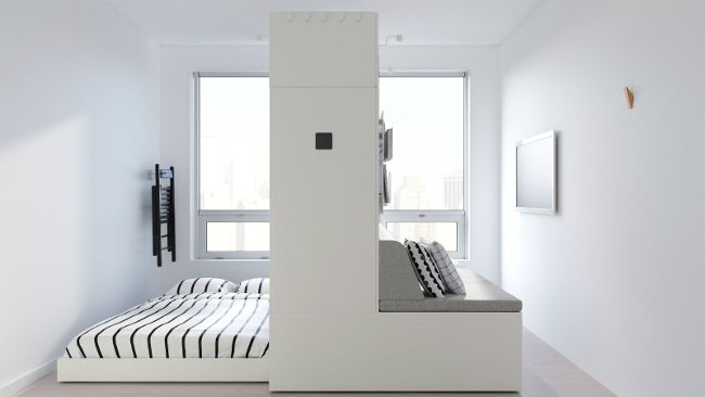 Термин «роботизированная мебель», несомненно, звучит как выдумка фантастов, однако модели будут больше похожи на обычную мебель IKEA на колесиках. На представленных изображениях можно увидеть гигантский шкаф с диваном с одной стороны и кроватью – с другой. Нажатием кнопки можно сложить кровать, освобождая место. Вся конструкция передвигается с помощью колесиков и включает в себя, помимо просторных мест для хранения, выдвижной рабочий стол. Согласно концепции IKEA, большинство необходимой мебели (кровать, диван, стол и шкафы) можно уместить на 10 квадратных метрах.