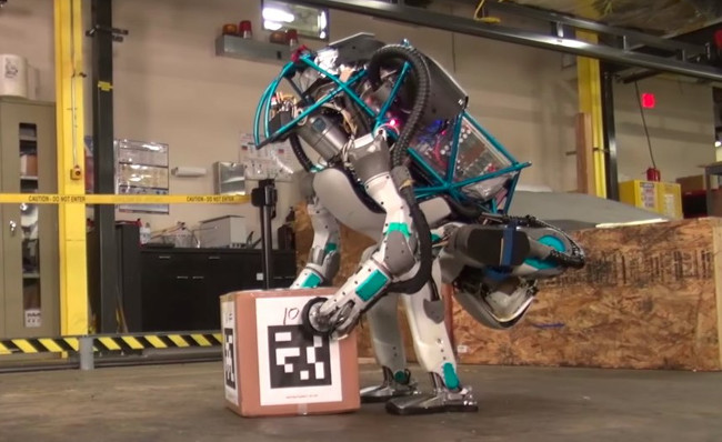 Ответом является видео ниже, в котором новый Атлас разгуливает в помещении и по заснеженному лесу. Это может быть временами похоже на походку слишком много выпившего человека, когда робот смог устоять, после того как оступился. Он также продемонстрировал способность загружать полки, поворачиваясь при этом в удивительно реалистичной манере, а также способность передвигаться с помощью цифровых меток в качестве навигационных маркеров.
