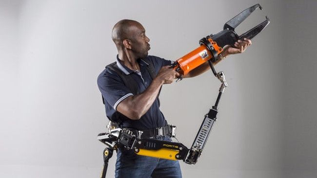 Одним из заблуждений 21 века является мнение, что ручной труд в значительной степени ушел в прошлое. Но во многих ручных операциях по-прежнему требуется тяжелый инструмент, используемый в течение всего рабочего дня, часто на высоте и в неудобных для доступа местах, что утомительно, даже если бы инструмент был изготовлен из легких материалов. Чтобы облегчить этот труд, Lockheed Martin придумала систему «Fortis», которая представляет собой безмоторный, шарнирный, носимый экзоскелет, призванный облегчить работу с использованием мощных и тяжелых инструментов, которые при этом опираются на землю, снимая часть нагрузки с рук работника.