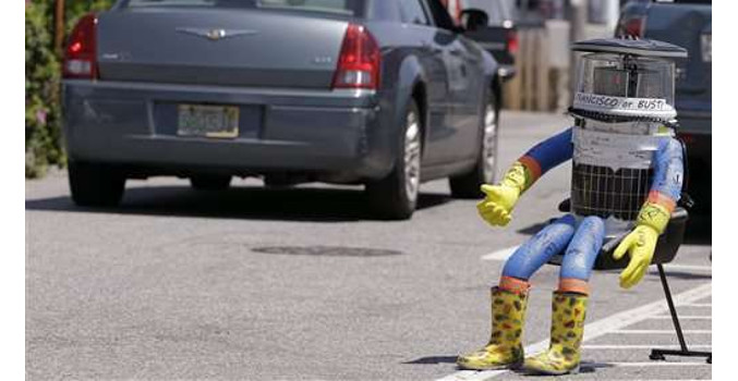 Робот-гуманоид по имени «hitchBOT» уже покорил дороги Канады и Европы, используя доброту и любопытство других путешественников. Но это его первый тур по США, начатый в Массачусетсе с намерением добраться до Сан-Франциско. В пути он надеется познакомиться с рядом наиболее известных американских достопримечательностей, в том числе увидеть Таймс-сквер, горы Рашмор и Гранд-Каньон.
