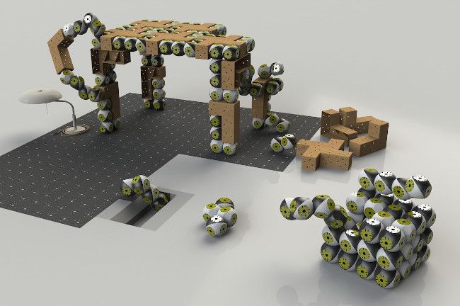 В качестве альтернативы они предлагают иметь только «один предмет мебели», который умудряется быть, скажем, стулом, столом и кроватью, когда это нужно, и состоящий из маленьких модульных роботов, которые могут создавать из себя всевозможные объекты.