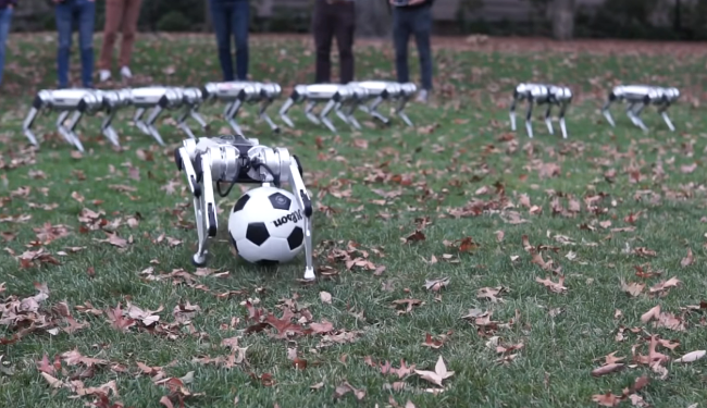 Разработчики Лаборатории биомиметической робототехники при Массачусетском технологическом институте вывели на осеннюю прогулку в своем кампусе целую компанию роботов Mini Cheetah и сняли об этом событии очаровательное видео.