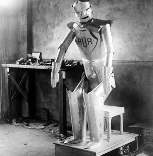 На груди Эрика красовались буквы «R.U.R», имеющие связь с написанной в 1920 году пьесой чешского писателя Карела Чапека под названием «Rossumovi Univerzální Roboti» (Универсальные роботы Россум), где впервые было использовано слово «робот».