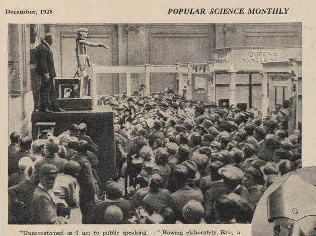 Начало XX века ознаменовалось подъемом индустриализации. После завершения Первой мировой войны промышленность перешла на выпуск потребительских товаров. Успехи механизации стимулировали увлечение всем механическим. Публика была очарована образами из научной фантастики от самолетов до роботов. Причем очарована настолько, что, когда герцог Йоркский отклонил приглашение на открытие ежегодной выставки Британского общества инженеров в сентябре 1928 года, несколько членов этого общества решили создать механического человека, который мог занять его место.