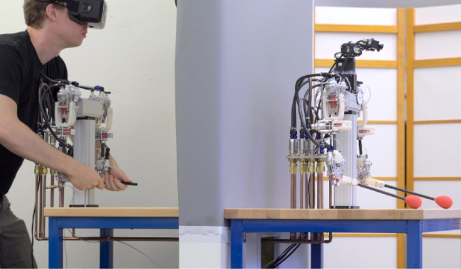 Основным преимуществом такой системы привода является то, что, в отличие от двигателей или сервоприводов, не нужно всю систему размещать в конечности робота, поэтому она может быть меньше и легче. Но есть здесь и минусы, как и у любой гидравлической системы, нужно регулярно проверять уровень давления жидкости. И более значительный недостаток в том, что для того чтобы создать автономного робота, понадобится набор двигателей и система управления, способные заменить кукловода, который вручную управляет пневмо-гидроприводами.
