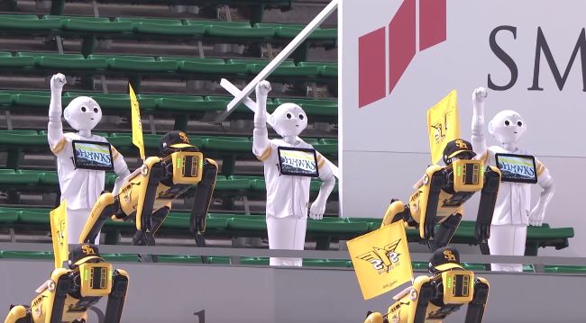 Спортивные команды по всему миру наполняют стадионы мягкими игрушками и картонными манекенами, чтобы заменить болельщиков, которые не могут посещать их игры из-за пандемии коронавируса. Чтобы сделать домашнее выступление своей японской бейсбольной команды Fukuoka SoftBank Hawks более оживленным, SoftBank решила пригласить на игру в качестве чирлидеров роботов - человекоподобного Pepper'а и четвероногого Spot'а от Boston Dynamics.