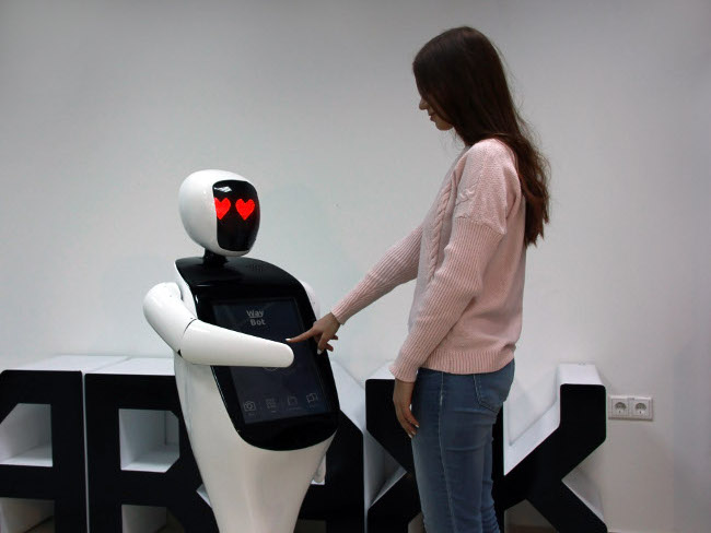 Алексей Кривоносов: Сейчас у нас отличная платформа, которую можно совершенствовать. У нас применены омни колёса, что обеспечивает очень плавное передвижение робота в любом направлении и под любым углом. Очень долго работали над системой вопросов-ответов — сейчас эта система работает на нейросети, и робот постоянно пополняет свою базу. Также применили сенсорный экран оптимальных размеров и сделали интерактивное понятное меню. Можно посмотреть карту местности и объектов вокруг (если вы находитесь в ТЦ), получить визуальную консультацию, посмотреть список товаров и услуг, сделать своё фото, добавить робота в соц. сетях. Все новые функции нужно обязательно тестировать на аудитории, только так можно понять, востребованы они или нет.