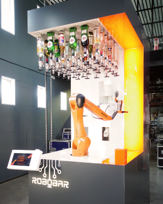 Дмитрий Усяев: Система модульная, то есть можно ее расширять, апгрейдить или заменять узлы на другие. Допустим, вместо одного робота можно поставить двух и увеличить производительность в несколько раз. Наш «робобар» имеет зону загрузки — 36 бутылок, это примерно 350 коктейлей. В системе есть встроенный ледогенератор с автоматической подачей воды, с датчиками расхода льда. То есть мы регулируем именно столько кубиков льда, сколько нужно для получения идеального коктейля. Автоматическая подача стаканчиков (пластиковые/бумажные) — она также на нескольких датчиках, чтобы если стакан не выпал — повторить действие. Система активации робота при выборе коктейлей следующая: в сенсорном меню встроенный RFID-считыватель, который идентифицирует только тех, кто имеет доступ к бару (VIP, совершеннолетние, гости мероприятия). Идентификация происходит по средствам RFID-фишек или браслетов.