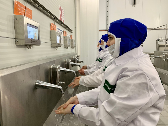 «Директива. Санитария» состоит из камер с системой распознавания лиц, проводящих аутентификацию персонала и контролирующих качество мытья. Если все действия по санитарной обработке рук выполнены верно, сотрудник получает доступ на производство. В противном случае на камере загорается красный сигнал, доступ в цех закрывается. Подробная статистика по успешности прохождения отображается в личном кабинете каждого сотрудника.