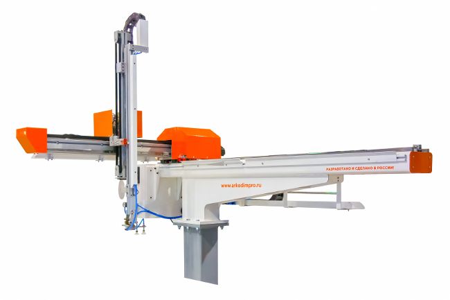 На сегодняшний день мы выпускаем декартовых линейных роботов-манипуляторов. Роботы данной архитектуры нашли широкое применение в производствах занимающихся литьём пластика под давлением. Робот-манипулятор монтируется на станок термопластавтомат, захват робота заныривает в створ раскрывшейся пресс-формы, достаёт готовое изделие и кладёт его на конвейр. Так же он может осуществлять вкладывание в пресс-форму закладных деталей. Эту работу робот выполняет гораздо быстрее человека, тем самым снижая цикл производства и как следствие уменьшая себестоимость готового изделия.