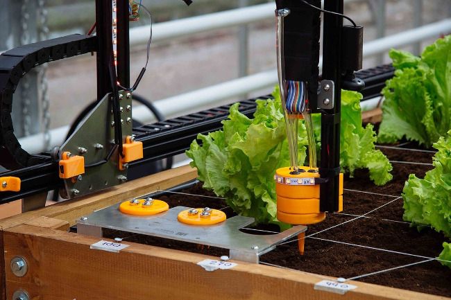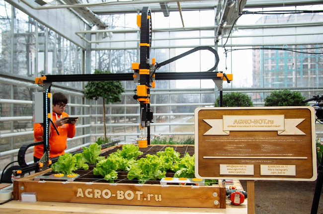 Константин Шляков: «Agro-bot» — это робот-огородник полного цикла. Он способен сажать семена, поливать, пропалывать, анализировать влажности почвы, обнаруживать и выкорчевывать сорняки.