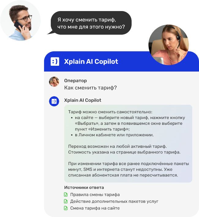 Находясь на связи с клиентом по телефону или в чате, сотрудник контактного центра может обратиться к цифровому помощнику за информацией и получить мгновенный и ёмкий ответ с ссылками на источники для уточнения деталей при необходимости. Благодаря Xplain AI Copilot повышается скорость обработки обращений, так как оператор получает возможность быстро ориентироваться во всей информации, которая может храниться в разных форматах: базах знаний, сайтах или отдельных документах. В результате оператор предоставляет оперативную помощь и предлагает исчерпывающие ответы в момент обращения. Время, которое специалист экономит на поиске информации, он может направить на построение более крепких отношений с клиентами. Помимо повышения скорости обработки, Xplain AI Copilot упрощает процесс ввода и погружения новых сотрудников, он проходит эффективнее и быстрее.