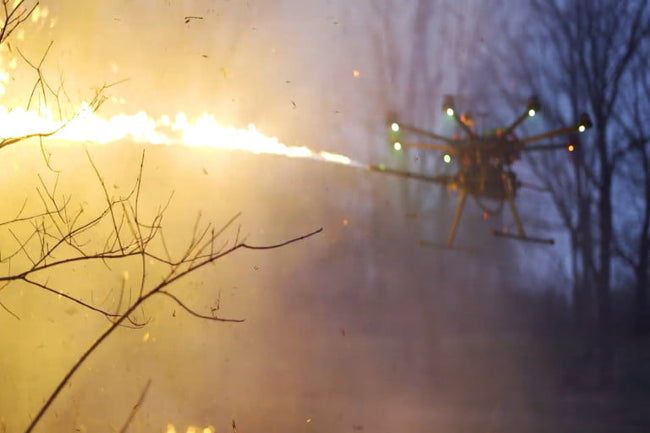 В 2019 году огнеметы снова стали модными – производитель огнеметов Throwflame решил воспользоваться ситуацией и представил дополнение для дронов TF-19 WASP Flamethrower Drone.