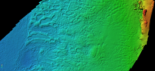 Цифровая модель рельефа, созданная на основе обработки материалов съемки с БПЛА. Формы мерзлотной сортировки грунтов — каменные кольца на архипелаге Шпицберген
