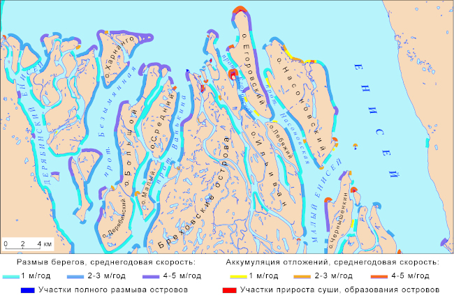 — Когда мы исследовали морской край дельты реки Лены по разновременным спутниковым снимкам, то получили новые данные о ее структуре и динамике изменения. На большей части дельты изменения не были обнаружены, но для 3% протяжённости её морского края впервые выявлены его изменения и составлены карты динамики. Также установлена связь динамики морского края с водностью рукавов реки. А выдвижение дельты нигде не обнаружено, — отметил Михаил Зимин.