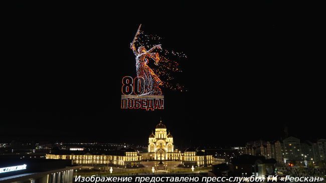 Компания «Геоскан» совместно с Движением Первых провела рекордное в России шоу дронов в честь года защитника Отечества и 80-летия Победы в Великой Отечественной войне. В ночном небе Салехарда 2500 квадрокоптеров со светодиодами превратились в 10 масштабных картин, созданных на основе рисунков детей-лауреатов всероссийского художественного конкурса «Небо Победителей».