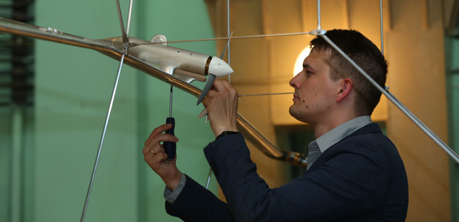 В настоящее время ученые института завершили первый этап экспериментов крупноразмерной модели-демонстратора, выполненной в масштабе 1:6. Испытания прошли в аэродинамической трубе малых скоростей ЦАГИ.
