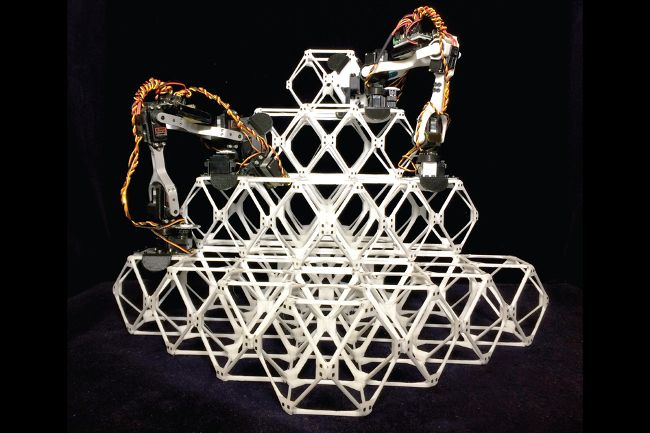 Каждый робот похож на маленькую руку с шарниром посередине, который делает его перемещения похожими на движения гусеницы-пяденицы. На обоих концах устройства имеются инструменты для захвата строительных структур, которые команда называет «воксели». Важно отметить, что робот и строительные структуры выступают как единое целое. Такой подход позволяет ему перемещаться в пространстве без сложной системы камер, датчиков и алгоритмов. Вместо этого, робот может отслеживать свое положение, просто считая шаги на любом сооружении, которое должен построить.