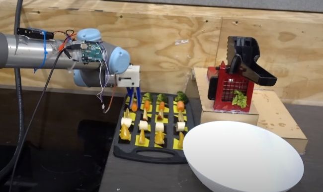 Исследователи из Кембриджского университета научили своего робота готовить 8 простых салатов. В качестве обучающего материала использовались видеоролики на которых человек демонстрировал эти рецепты.