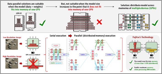 Для сетей DNN, используемых в различных областях сферы искусственного интеллекта, включая распознавание и классификацию речи и объектов, требуется большой объем вычислительных ресурсов. Это создает большую нагрузку на существующие вычислительные инфраструктуры. В рамках нового решения от Fujitsu Laboratories of Europe для глубинного обучения модельный параллелизм используется в задачах автоматического распределения нагрузки на память сетей DNN. В результате, возможности существующих инфраструктур для обработки данных, обрабатываемых приложениями искусственного интеллекта, значительно расширяются без необходимости в дополнительных инвестициях.
