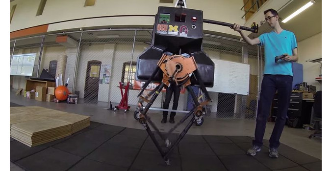 В лаборатории Dynamic Robotics из штата Орегон ведется работа над проектом ATRIAS по изучению особенностей ходьбы и бега, главной целью которого является создание робота, который способен будет преодолевать ухабистую местность, не рискуя при этом упасть. Мы уже рассказывали ранее в этом году о роботе ATRIAS, когда исследователи продемонстрировали его способности увертываться при бомбардировке шарами и удерживать баланс даже при ударах ногами по корпусу робота: http://www.robogeek.ru/nauchnye-razrabotki-programmnoe-obespechenie/super-bystryi-dvunogii-robot-idet-na-rekord.