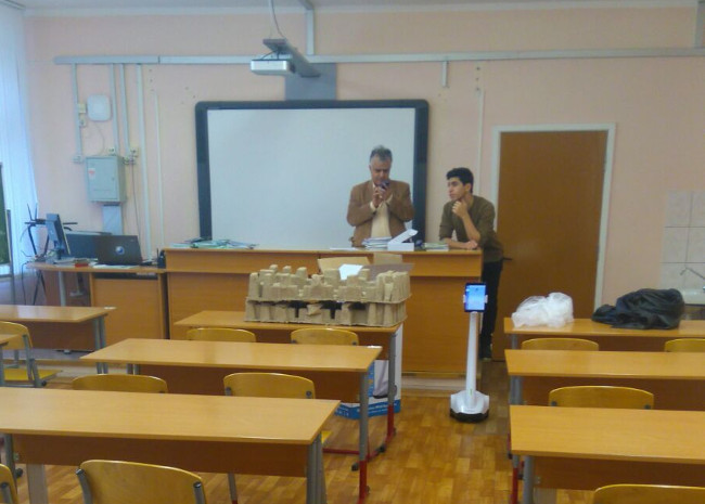 Рубен Абраамян: Инициатором покупки робота виртуального присутствия был я. До этого мы силами учеников собирали подобное устройство, естественно, на более низком техническом уровне. Брали радиоуправляемую машину, склеивали корпус и прикрепляли телефон. Для управления требовалось два человека. И управление было в пределах видимости. Я организовал в школе фестиваль науки и, встретив в интернете ваше устройство, решил купить. Робот имел огромный успех, но это была разовая акция.