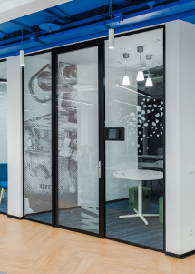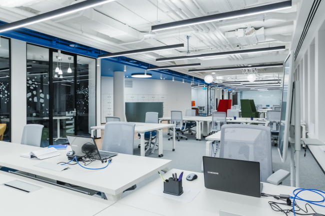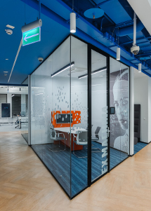 Рабочее пространство Центра искусственного интеллекта наполняют зоны для мозговых штурмов, комнаты для командной работы (Duo Studio), фокусные студии (Focus Studio) - комнаты со столами с переменной высотой, рассчитанные на одного человека, где можно уединиться, чтобы поразмышлять и сконцентрироваться; зона для проведения видеоконференции, несколько open boot & phone boot зон для коммуникации.