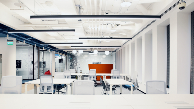 В световой концепции офиса применяются лампы и системы освещения, выполненные в эстетике выскокотехнологичного интерьера, а также имитирующие натуральное дневное освещение.
