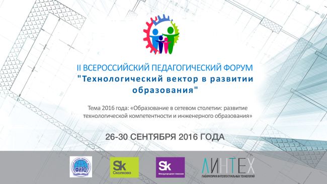 С 26 по 30 сентября 2016 года в Москве пройдет II Всероссийский педагогический форум «Технологический вектор в развитии образования». Тема 2016 года: «Образование в сетевом столетии: развитие технологической компетентности и инженерного образования».
