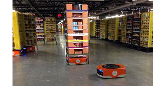 Теперь гигант электронной коммерции может похвастаться тем, что он повысил эффективность работы, понизив одновременно нагрузку на работников складских комплексов за счет развертывания более 15000 самоходных роботов, снующих по этажам больших складских комплексов и доставляющих в пункт упаковки игрушки, книги, электронные товары и другие изделия.
