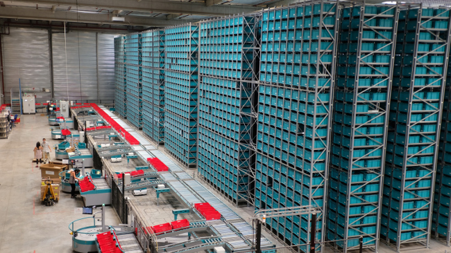 Exotec работает над полуавтоматическими складами для клиентов из сферы электронной коммерции. В основе ее системы лежат небольшие роботы Skypods, которые перемещаются по территории склада и поднимаются и опускаются по стеллажам, перемещая стандартные корзины с товарами, а также специальное логистическое ПО для координации их работы. По мере масштабирования бизнеса клиента количество роботов и стеллажей можно увеличивать без остановки работы склада.