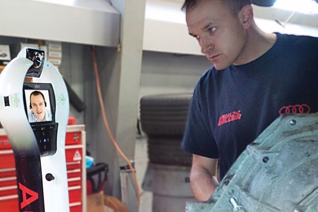 «Если у дилера есть блок телеприсутствия, можно следовать за механиком к автомобилю и работать с ним, как если бы мы стояти плечом к плечу», - сказал Брайан Стоктон, генеральный менеджер технической поддержки Audi в Америке. «Мы видим то, что видит там механик. Мы можем записать то, что слышит он. Мы можем делать это легко и быстро, не прибегая к услугам электронной почты».