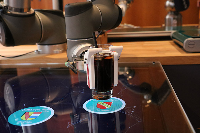 Все роботы должны работать синхронно, почти без свободного пространства между ними и рядом с клиентами. Аппаратное и программное обеспечение для Cocktail Bot 4.0 создала группа специалистов из исследовательского центра информационных технологий в немецком г. Карлсруэ.