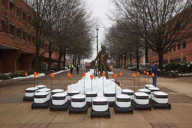 Роботы для автономной доставки товарных и пищевых заказов становятся все более популярными у разработчиков. Недавно в университетском городке Университета Джорджа Мейсона в округе Фэрфакс, штат Вирджиния, появился крупнейший в мире парк роботов по доставке пищи.
