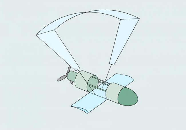Новая разработка подразумевает применение дрона, который сворачивается и помещается в корпус, похожий на капсулу – именно эту конструкцию запускают в сторону цели из гранатомета калибром 40 миллиметров. На заданной высоте корпус открывается и падает, а дрон раскладывается и продолжает полет. Электромотор беспилотника работает от встроенного аккумулятора, начиная вращать задний пропеллер сразу после раскрытия корпуса. Аэродинамический подъем обеспечивается за счет крыла наподобие парашюта, а два других складных крыла открываются на определенной скорости для стабилизации полета.