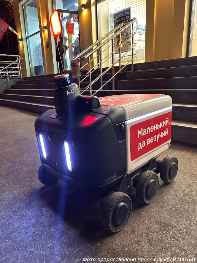 «Магнит», один из ведущих ритейлеров в России, начал тестировать доставку онлайн-заказов с помощью роверов – роботов-доставщиков.