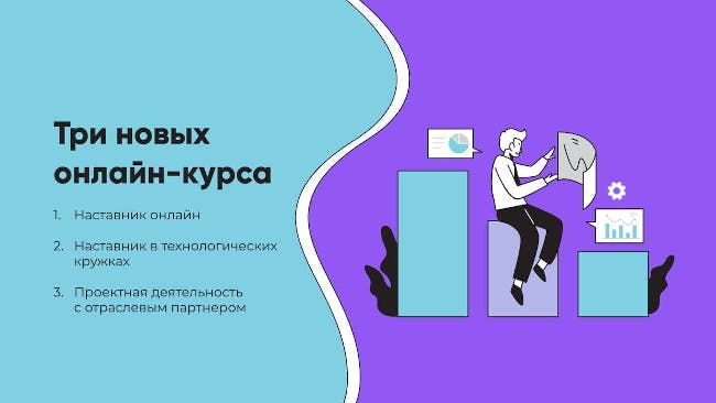 В октябре 2021 года «Академия наставников» — совместный проект Кружкового движения НТИ, Агентства стратегических инициатив и Фонда «Сколково» — запускает три новых онлайн-курса: «Наставник онлайн», «Деятельность наставника в современных технологических кружках» и «Проектная деятельность с отраслевым партнером». Обучение на курсах бесплатное, зарегистрироваться можно уже сейчас.