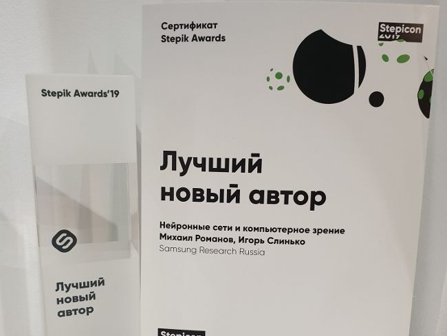 Открытый курс «Нейронные сети и компьютерное зрение», разработанный экспертами Центра искусственного интеллекта Samsung в Москве Михаилом Романовым и Игорем Слинько, был признан лучшим в номинации «Лучший курс от новых авторов» среди 100 курсов, поданных на премию.