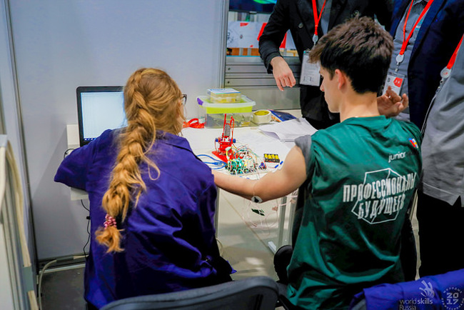 В некоторых компетенциях чемпионата участвуют школьники. Владислав Халамов, руководитель учебно-методического центра РАОР, поделился своим мнением относительно компетенции «Мобильная робототехника JUNIOR» на портале фгос-игра.рф: