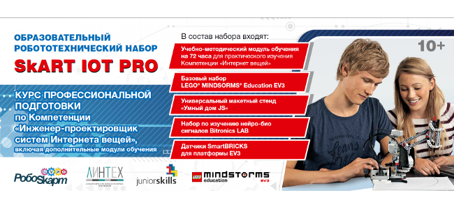 Новые и интересные уроки технологии с комплектами СКАРТ станут не только любимыми, но и позволят освоить новую профессию, которая уже сегодня стала востребованной крупными промышленными компаниями, корпорациями, организациями различных сфер. При успешном прохождении курса и сдачи демонстрационного экзамена обучающиеся получат удостоверение, подтверждающее квалификацию специалиста. Набравшие самые высокие баллы смогут поступить в профессиональные колледжи и вузы по данному профилю на бюджетную форму обучения без экзаменов уже с 2018 года. 4 колледжа и 2 вуза Москвы начнут обучать студентов по данной профессии. Для обучения Интернету вещей имеется широкая линейка конструкторов СКАРТ для непрерывной эффективной работы со школьниками и студентами.