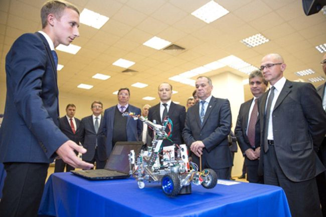 Сергей Кириенко заинтересовался прототипом робота-дозиметриста, разработанного и спроектированного учащимися лицея №58 по заказу Уральского электрохимического комбината (АО "УЭХК") в рамках образовательной инициативы Топливной компании Росатома "ТВЭЛ" "Школьный технопарк".