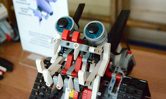 Модели действительно разные: начиная собранным из набора Lego роботом-сортировщиком и заканчивая моделью светового меча из «Звездных войн». Один из школьников даже представил деревянную модель пистолета Beretta M9. С глушителем. А собранная одним из учеников собака на гусеничном ходу позировала перед камерами и кусала объективы телекамер.