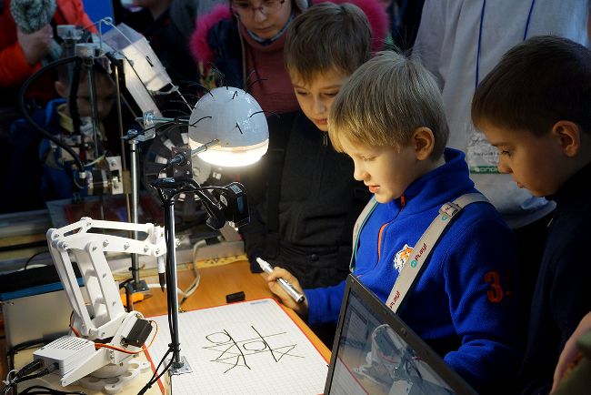 На протяжении всего мероприятия любой желающий мог познакомиться с разработками молодых изобретателей, попробовать себя в робо-футболе, пройти тест на уровень IQ и стать частью виртуальной реальности, с помощью VR-очков.