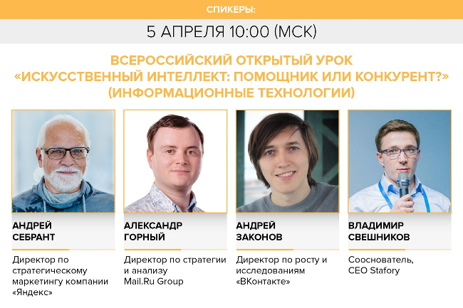 Помимо урока организаторы подготовили для российских школьников увлекательные активности. На портале “ПроеКТОриЯ” можно пройти созданный профессиональными психологами профнавигационный тест и узнать, в каком направлении стоит строить карьеру. В социальных сетях проекта подписчикам предстоит поделиться мнением о том, какие компетенции будут востребованы в эпоху искусственного интеллекта, задать вопрос спикерам урока и с помощью образовательного теста узнать, какие из новых профессий больше подходят роботу, чем человеку.