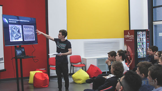 Мастер-класс для школьников состоял из трёх секций: 3D-моделирование, веб-разработка и лекция, посвящённая IT-технологиям.