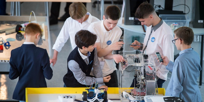 Десятиклассник из московской школы № 1409 Егор Ёлкин создал андроида для изучения взаимодействия роботов с людьми. Робот оснащен сенсорами прикосновения и адресными цветными светодиодами, которые служат для взаимодействия с человеком. Машина реагирует на прикосновения и тон голоса.