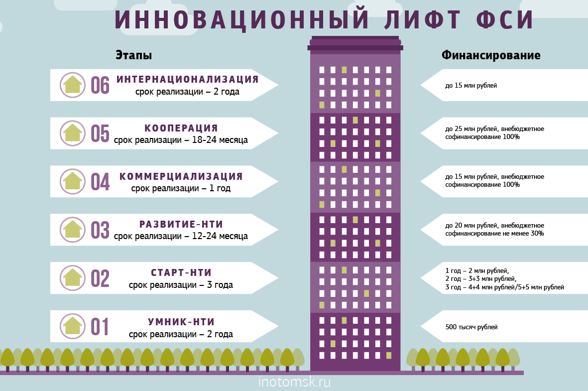 С момента начала работы Фонда появилось множество программ. Сегодня их уже более 30 — они идут друг за другом, последовательно выстраивая инновационный лифт. На каком этаже выйти? Каждый решает сам. «УМНИК» — это всего лишь первая ступень к научной карьере или собственному делу.