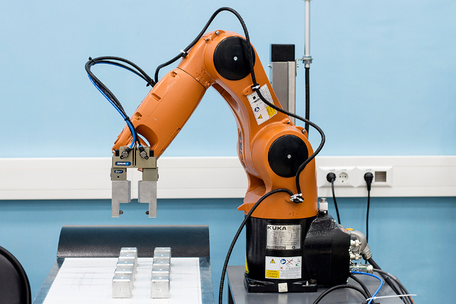 Во второй лаборатории представлены полноценные промышленные роботы-манипуляторы немецкой компании KUKA, которые используются на предприятиях. Лаборатория оснащена как учебными роботизированными комплектами на базе роботов малой грузоподъёмности, так и крупными технологическими комплексами, оснащёнными настоящим производственным оборудованием, – это роботизированные сборочно-сварочная ячейка и ячейка механической обработки. Для расширения возможностей оборудования лаборатория оснащена промышленным оптоволоконным лазером, с помощью которого в дальнейшем будут реализовываться роботизированная объёмная лазерная резка и лазерная сварка металлов.